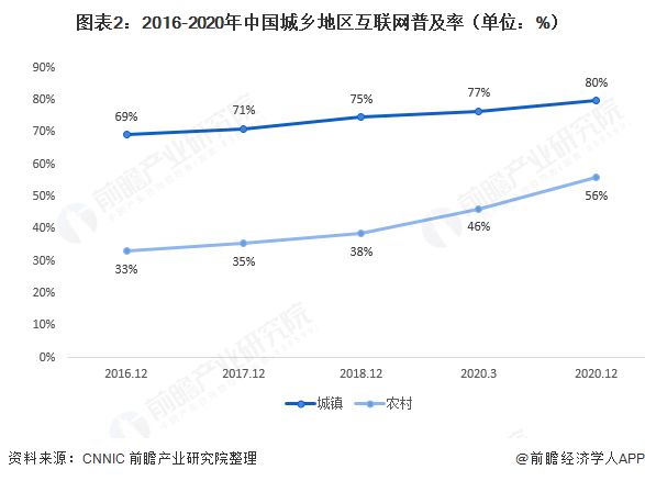 截至2020年12月,我国城镇地区互联网普及率为79.8%,较2020年3月提升3.3个百分点;农村地区互联网普及率为55.9%,较2020年3月提升9.7个百分点。城乡地区互联网普及率差异较2020年3月缩小6.4个百分点。整体来看,我国乡村地区互联网普及率仍然较低,未来,社交电商渠道向乡村下沉或将成为行业主要趋势。