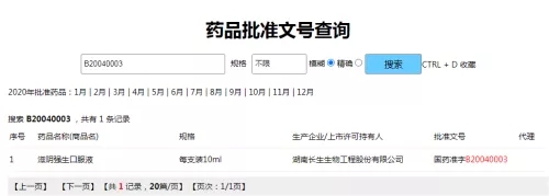 据悉,山东长彤生物公司相关负责人曾向媒体表示,“长生露”产品有两个批号,其中一个是“国药准字”,批号为B20040003。对此,笔者查询后发现,该批号对应产品为“滋阴强生口服液”,生产企业为湖南长生生物工程股份有限公司。