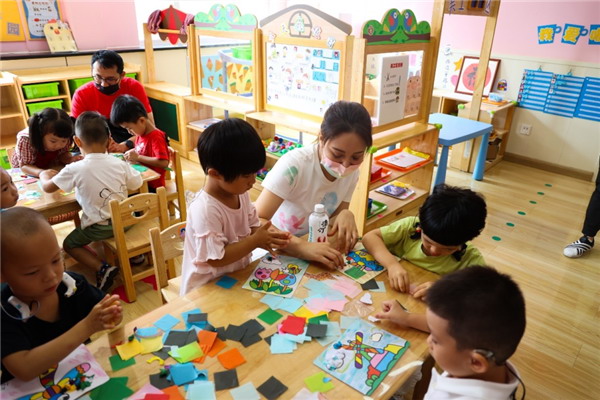 捐赠仪式结束后源初公益基金会一行人参观了图书借阅室和聋儿集体班教室,与小朋友共同制作手工、绘画。值得一提的是,在互动交流的活动中,每个小朋友的脸上都流露出了别样的欣喜和灿烂的笑容。